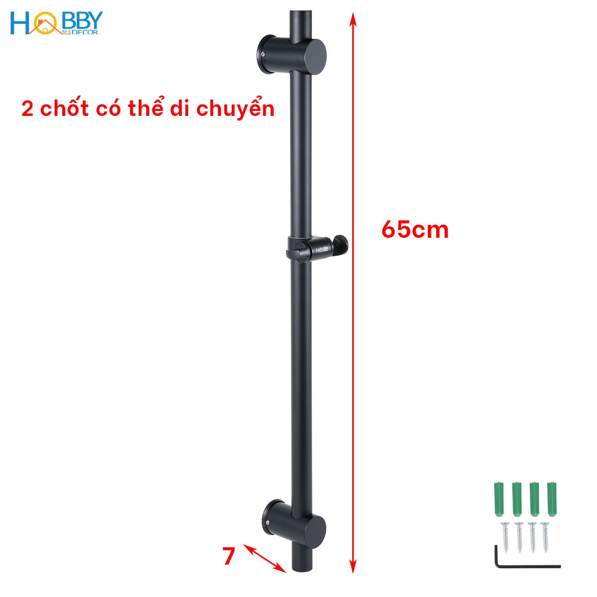 Thanh treo tay sen tắm cơ động inox 304 sơn đen Hobby home decor GVST3