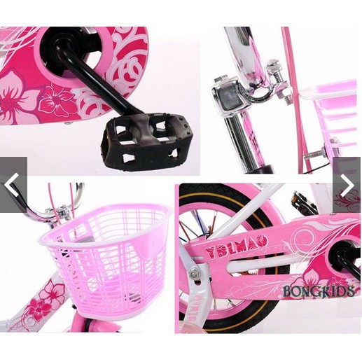 Giới thiệu [Trợ giá] Xe đạp mini nữ bánh 12,14,16 cho bé gái 2-7 tuổi có giỏ đồ, đệm sau