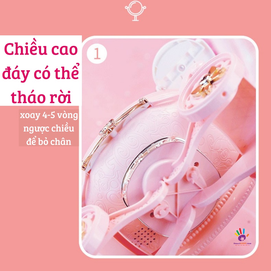 ƯU ĐIỂM SẢN PHẨM Bộ Trang điểm thật Xe cổ tích 54 chi tiết - Màu sắc an toàn, dễ chùi rửa, không ảnh hương da - Bộ trang điểm gồm 54 chi tiết cầu kỳ và mô phỏng chi tiết nhất trang điểm thật - Thiết kế tinh tế với phần đáy có thể tháo rời giúp tăng/giảm chiều cao hộp trang điểm