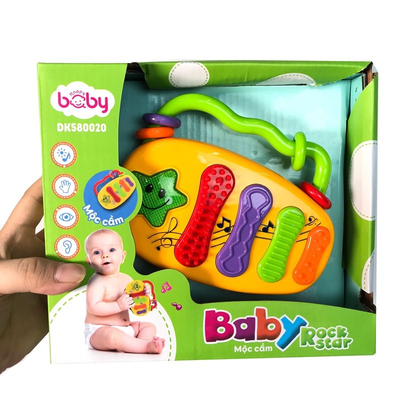 Chào mừng bạn ghé thăm nhà sách Tbook - Tên sản phẩm: Baby Rock Star - Mộc cầm DK580020 - Đồ chơi âm nhạc là món đồ chơi ưa chuộng và rất thích hợp cho trẻ sơ sinh và trẻ nhỏ, khoa học chứng minh trẻ nhỏ tiếp xúc với âm nhạc sớm sẽ thông minh, nhanh nhẹn hơn. - Bộ đồ chơi: Baby Rock Star – Mộc cầm sẽ là món đồ chơi bổ ích cho trẻ sơ sinh và trẻ nhỏ trong những giai đoạn phát triển đầu đời. - Thông tin sản phẩm: Thương hiệu : DUKA - Xuất xứ thương hiệu : Việt Nam - Độ tuổi: trên 1 tuổi - Thành phần: Nhựa Sản phẩm có dùng pin - Khối lượng: 223 gr - Sản xuất tại : Trung Quốc - Năm sản xuất : 2020 - Tiêu chuẩn quốc gia về đồ chơi trẻ em QCVN 3:2009/BKHCN Hướng dẫn sử dụng: - A. Bấm phím để vang lên các âm thanh khác nhau - B. Bấm phím hình ngôi sao với 4 điệu nhạc khác nhau - C. Đèn nhấp nháy theo điều nhạc