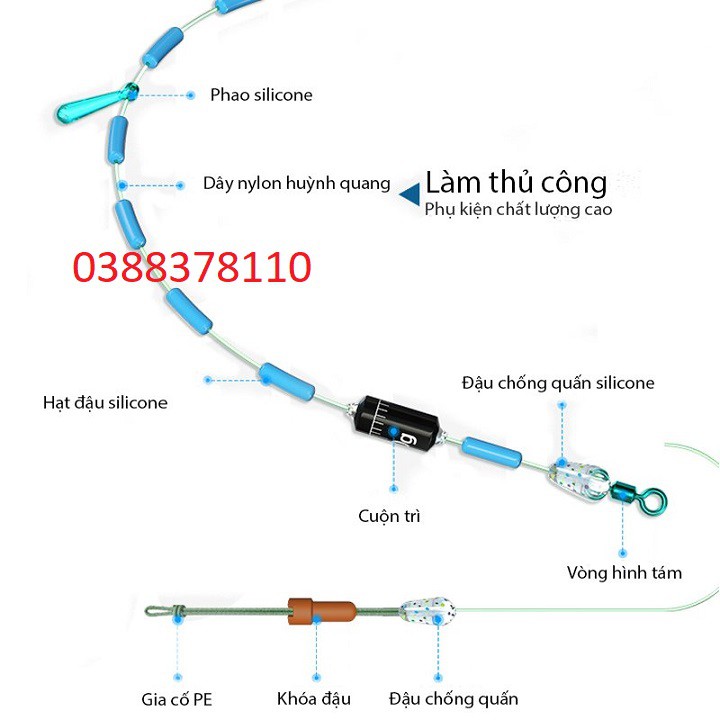 **Thông Tin Chi Tiết - Thương hiệu: Chuang Wei - Chất liệu : Nylon lụa nhập khẩu - Màu sắc dây : Xanh Phát quang - Phân loại : 12 phân loại + 3m6 ( 2.0 ) + 3m6 ( 2.5 ) + 3m6 ( 3.0 ) + 4m5 ( 2.0 ) + 4m5 ( 2.5 ) + 4m5 ( 3,0 ) + 4m5 ( 4.0 ) + 5m4 ( 3.0 ) + 5m4 ( 4.0 ) + 5m4 ( 5.0 ) + 6m3 (3.0) + 6m3 ( 4.0 ) * Ưu điểm nổi bật : - Lựa chọn bởi các phụ kiện cao cấp như dây cước trục, chì câu cá, hạt chặn, khóa link, chân cắm phao, dây PE chống nổ trục. Cụ thể như sau: + Khóa Link xoay linh hoạt 360 độ, lực kéo mạnh + Chì in vạch lõi kép được sản xuất với nguyên liệu thô tránh bức xạ. Lõi trong bằng nhựa PPO-2 siêu mềm không làm tổn thương dây, lõi ngoài bằng kim loại nhẵn bóng bảo vệ lõi trong + Kết hợp với dây PE chống nổ trục + Chân cắm phao slicon, đàn hồi tốt, truyền tín hiệu nhanh và nhạy