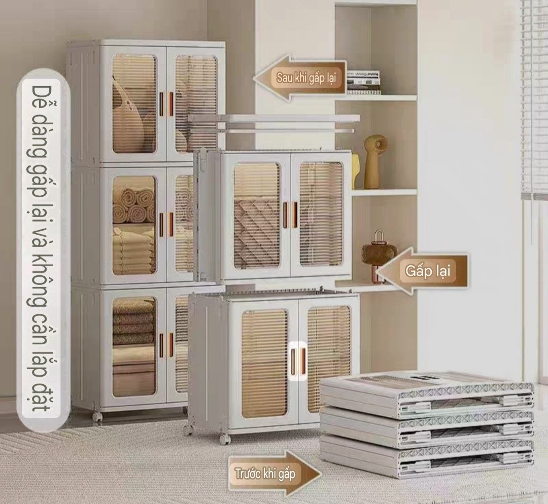 Có thể làm tủ quần áo gấp gọn, tủ để túi xách, giày dép, bỉm sữa, đồ ăn vặt, đồ chơi, đa năng và tiện lợi