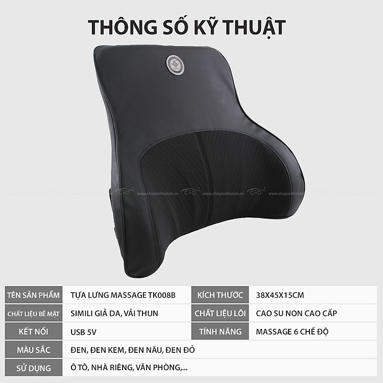 - Hướng dẫn sử dụng: dùng tựa lưng và Massage khi ngồi trên xe.