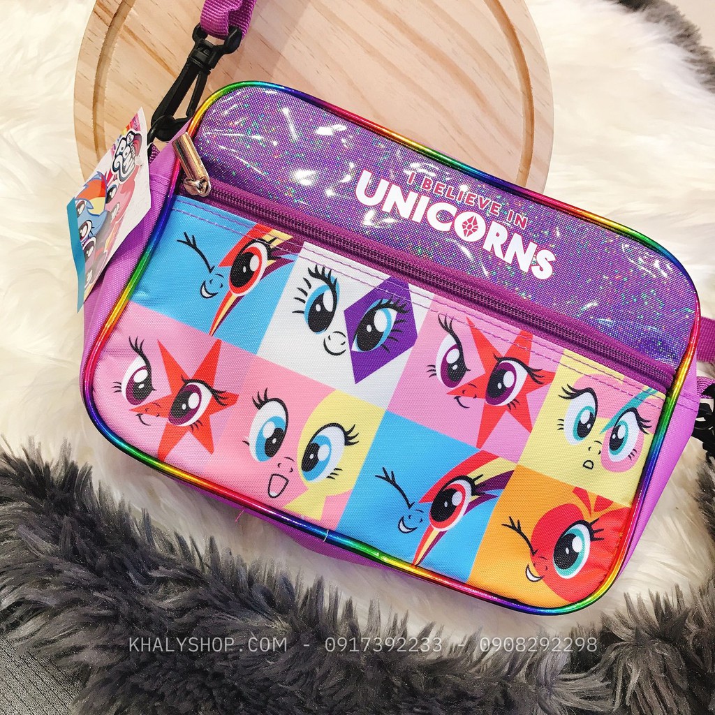 Giới thiệu Túi đeo chéo 2 ngăn hình Ngựa Pony màu tím ánh kim tuyến siêu hot cho trẻ em bé gái (Thái Lan) - 600NPN72349 - (24x7x17c