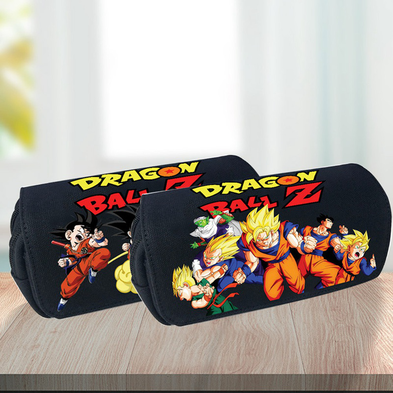 Túi đựng bút canvas phối khóa kéo đôi họa tiết anime Dragon Ball theo phong cách mùa thu
