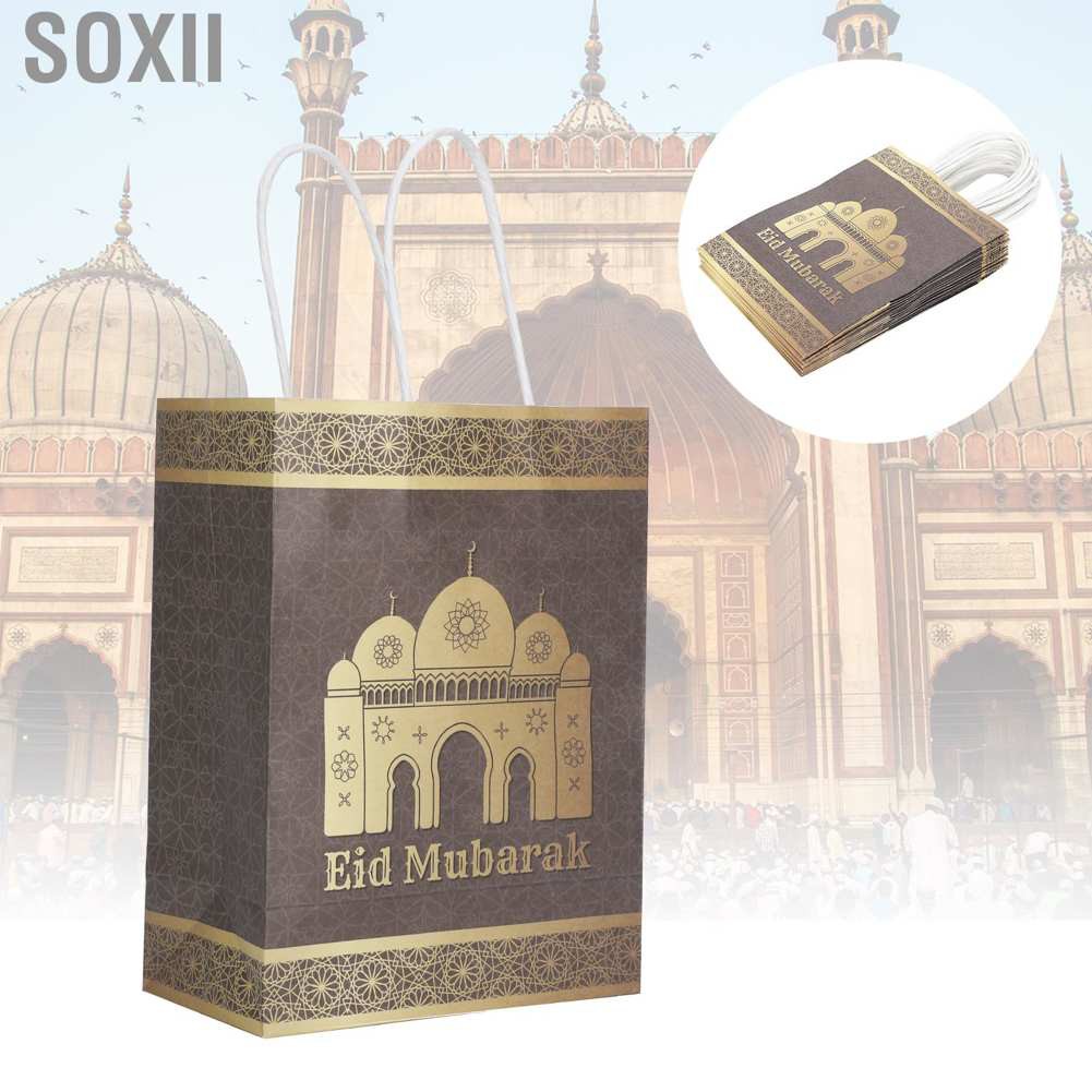 Feature: 1. Not only can it be used as Eid Mubarak party bags, snack bags, popcorn sticks, candy bars, candies, etc., but also can be used for festival decorations. 2. This gift bag is made of environmentally friendly and recyclable paper, which must be used for a long time. 3. The Eid Mubarak sign design is adopted and the unique Muslim Ramadan elements are printed to make the Ramadan party more impressive. 4. This gift bag is light and simple, with a hand strap, which is easy to use. 5. The perfect gift wrapping bag for your best friends, partners, and elders.