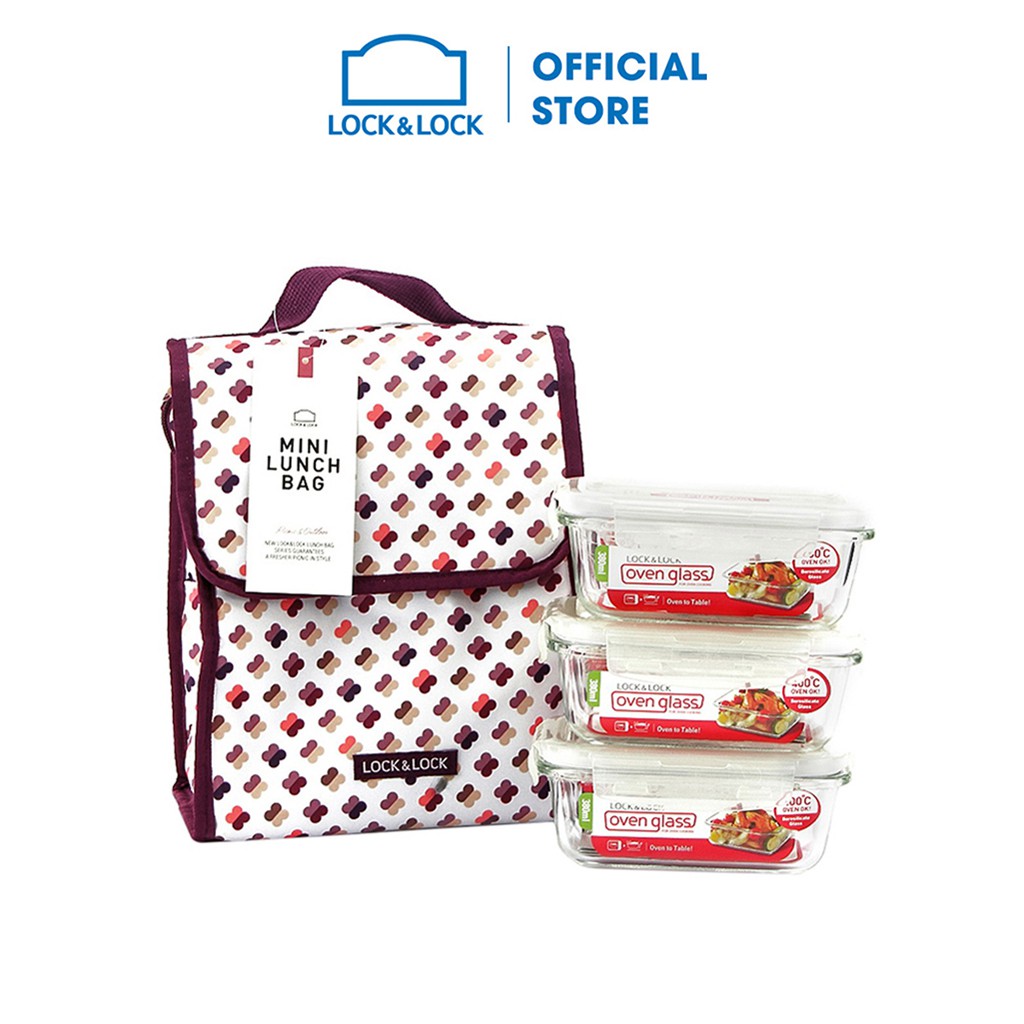 Giới thiệu Bộ Túi Hộp Cơm Thủy Tinh Lock&Lock LLG422WN3 4EA - Wine