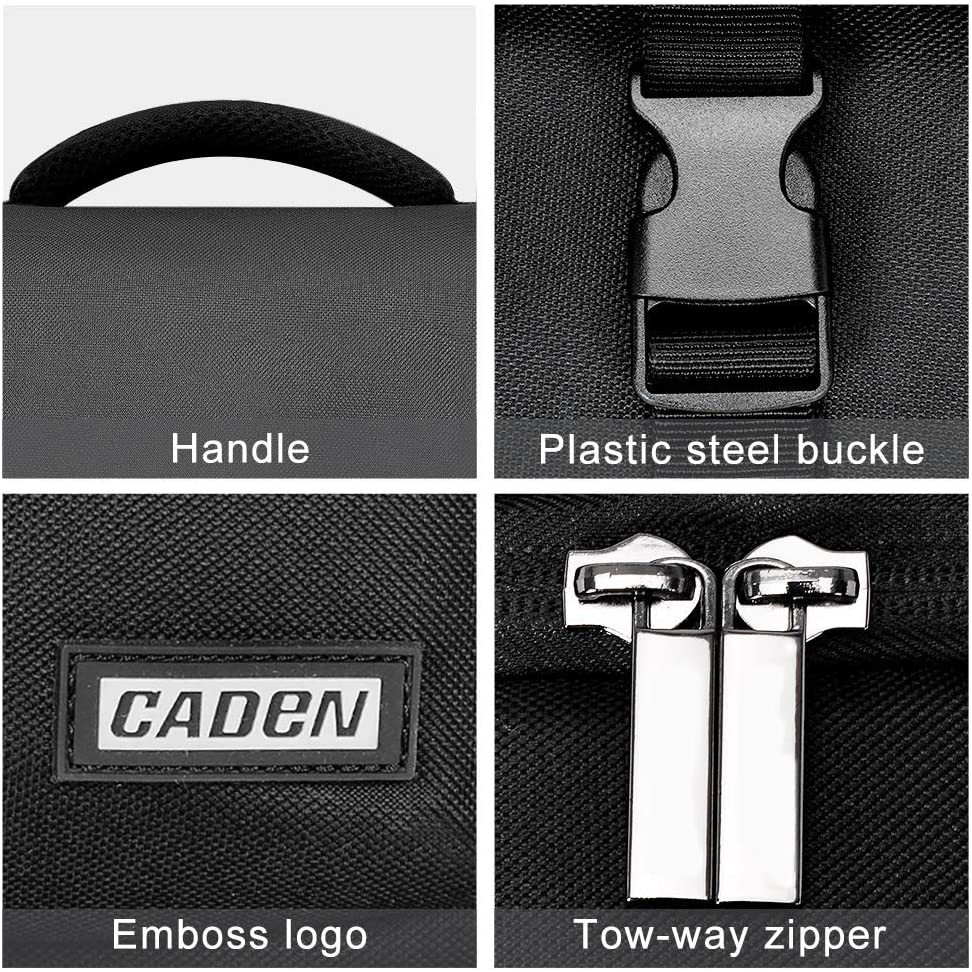 Tóm tắt sản phẩm: - Kích thước: 24 * 19 * 14 CM / 9.4 * 7.5 * 5.5 inch, trọng lượng: 1.13lb - Phù hợp với 1 máy ảnh + 2 ống kính + điện thoại di động + kính lọc + phụ - Nắp túi nắp gập phía trước với tấm dính và chốt nhựa thép bảo vệ kép thiết bị máy ảnh của bạn khỏi bị đánh cắp; - Khóa kéo hợp kim kim loại kép để bạn truy cập nhanh vào máy ảnh của mình; Thân máy siêu dày 10MM, bảo vệ chắc chắn các phụ kiện máy ảnh và ống kính của bạn; - Túi bên trong DIY có thể tháo rời và tùy chỉnh được làm bằng độ dày 20mm với lớp đệm bảo vệ 7 lớp, chống va đập và không bị biến dạng. - Dây đeo vai thoải mái, chống va đập và giảm áp lực, có thể được điều chỉnh theo kích thước của bạn; - Hai túi ở hai bên để đựng pin, nắp ống kính, hộp đựng kính râm; - Tay cầm thoải mái và thoáng khí giúp bạn giảm bớt căng thẳng cho tay. - Đai đeo và tay cầm được kết nối với túi máy ảnh được sử dụng công nghệ gia cố thanh-tack có khả năng chịu tải lên đến 50kg (110,2lb) - Chăm sóc tốt nhất cho máy ảnh, ống kính, đèn flash, chân máy và các phụ kiện khác của bạn. - Tất cả các đường khâu được tăng cường làm cho túi máy ảnh bền hơn;Dây kéo và móc hợp kim CADeN sẽ không han gỉ