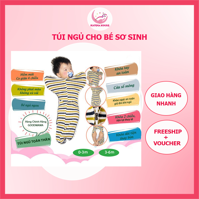 Cấu tạo: túi được thiết kế vừa vặn, giúp bé không bị giật mình khi ngủ mà vẫn cho bé tư thế thoải mái như khi trong bụng mẹ