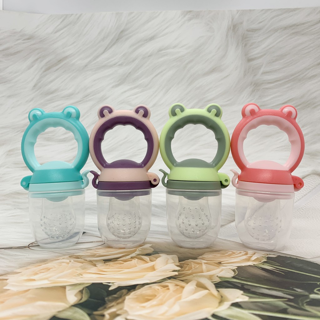 Túi nhai Silicon ăn dặm chống hóc an toàn cho bé , núm ti giả cho bé tập ăn dặm Từ 6 tháng tuổi trở lên, hầu như trẻ đều đã có 1,2 chiếc răng xinh. Trong giai đoạn này, các con thích gặm nhấm nên hoa quả là lựa chọn thích hợp để vừa cung cấp thêm chất xơ, vitamin, muối khoáng cũng như giúp quá trình mọc răng của trẻ diễn ra thuận lợi hơn. Tuy nhiên việc dạy cho trẻ làm quen với việc ăn dặm này không hề dễ dàng, nhiều khi không khác gì đánh vật :joy:. Với sản phẩm túi nhai ăn dặm việc ăn dặm hoa quả sẽ không còn là nỗi ám ảnh với ba mẹ ! Ưu điểm : + Túi này được làm bằng silica gel không chứa BPA, an toàn và không có mùi vị. + Quy trình sản xuất độc đáo, lỗ nước ép tròn đều 2mm sẽ không bị tắc, và vòng đệm sẽ không bị tràn + Vòng tay cầm thoải mái + Nắp đậy trong suốt giữ tươi và chống bụi cho trái cây và rau khi trẻ ăn còn thừa . + Miệng núm có đường kính lớn 20mm, dễ dàng cho thức ăn vào núm + Khóa an toàn giúp mẹ khỏi lo bé mở nhầm làm trào thức ăn ra ngoài mở nhầm + Dễ dàng tháo lắp vệ sinh Size núm : free size. Size được thiết kế phù hợp cho bé từ 5 tháng trở lên có thể dùng được. Bốn màu cho mẹ lựa chọn : Xanh dương, Xanh lá, Tím, Hồng