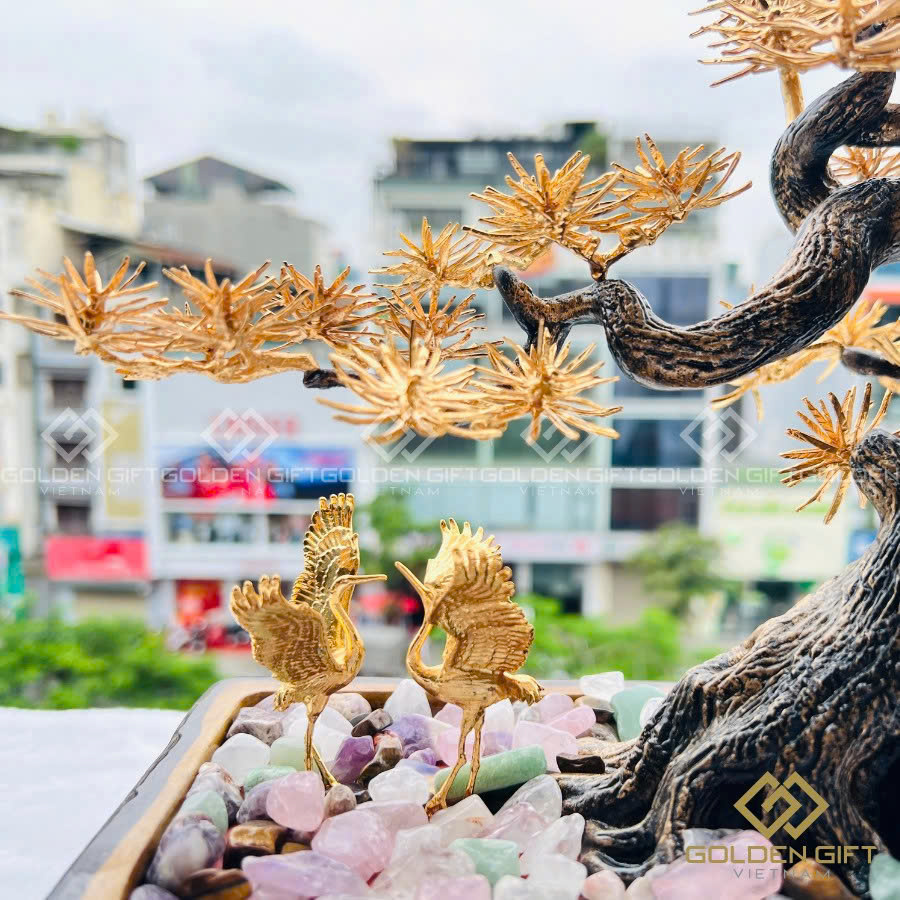 Tùng Hạc Diên Niên mạ vàng là mẫu quà vàng mới được Golden Gift thiết kế và ra mắt. Quà vàng này kết hợp giữa hai hình tượng Cây Tùng và Chim Hạc.