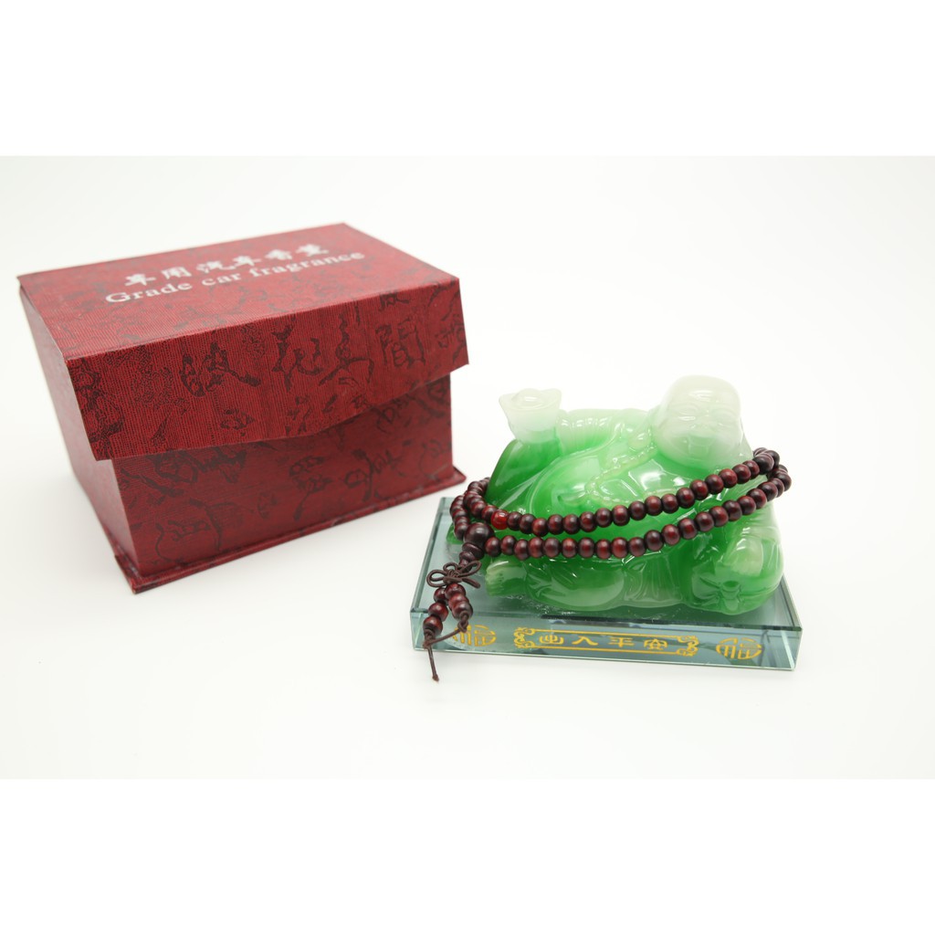 Giới thiệu Tượng Di Lặc thần tài ngọc phong thủy nước thơm TẰNG VÒNG GỖ loại 1 kích thước lớn trang trí táp lô ô tô