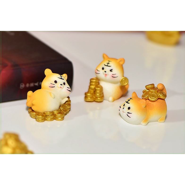 Tượng hổ ôm vàng may mắn trang trí tiểu cảnh cây mai, cây đào ngày Tết Size ~3.5-4.5cm