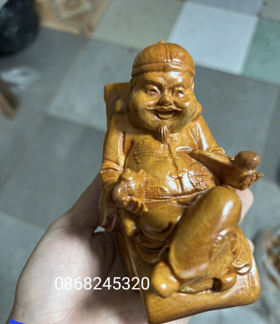 _ Tượng ông thương gia được làm bằng chất liệu gỗ bách xanh liền khối tự nhiên 100%