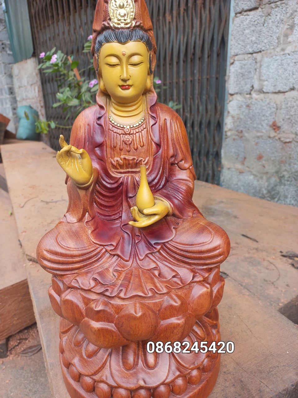 _ Tượng phật bà mẹ quan âm bồ tát được làm bằng chất liệu gỗ hương đá liền khối tự nhiên 100% ,Và được sơn son dát vàng cao cấp