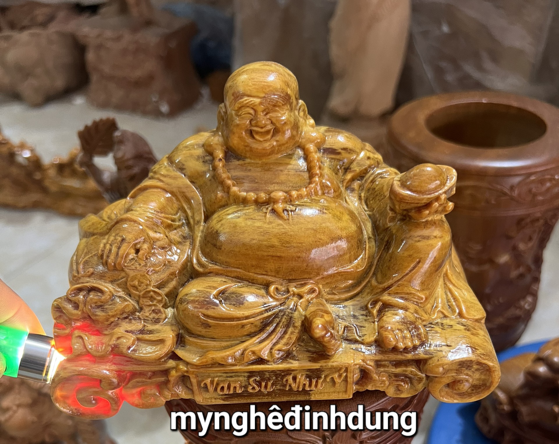 _ Tượng phật di lặc để ô tô đuọc làm bằng chất liệu gỗ huyết long liền khối tự nhiên 100%