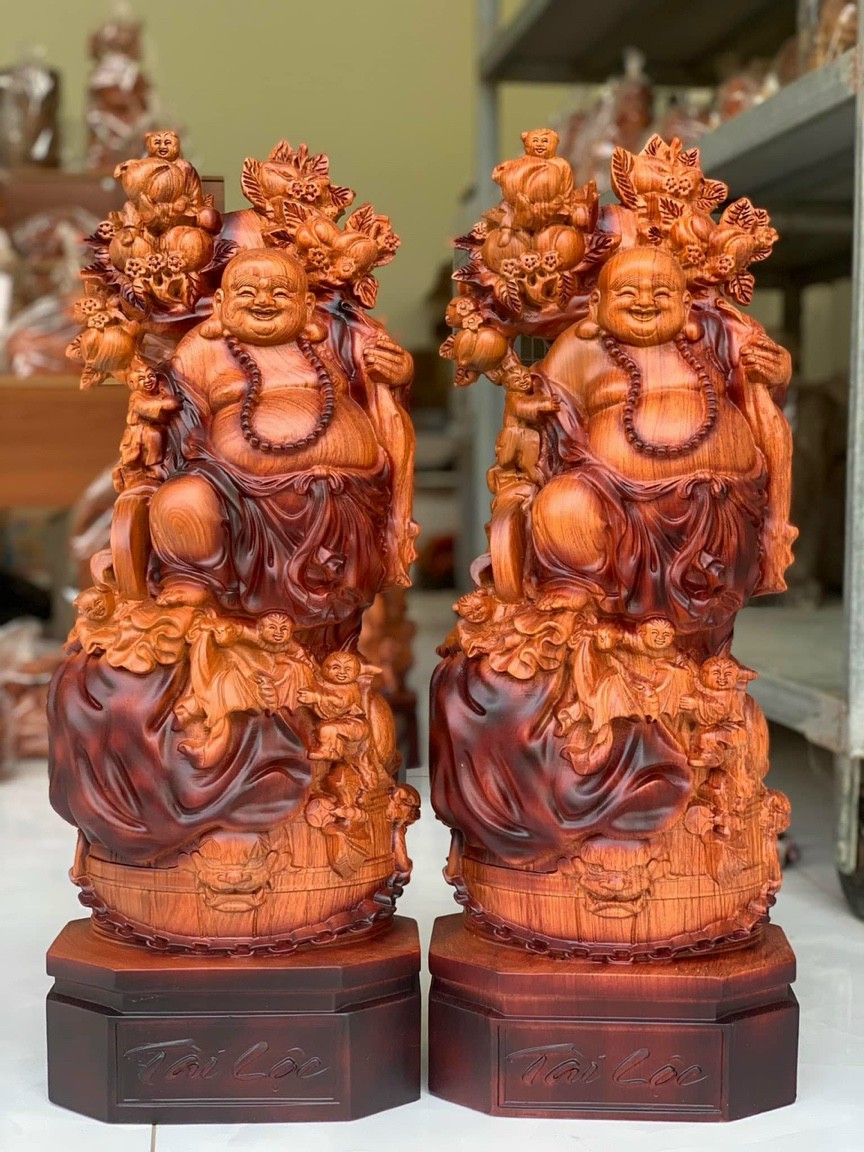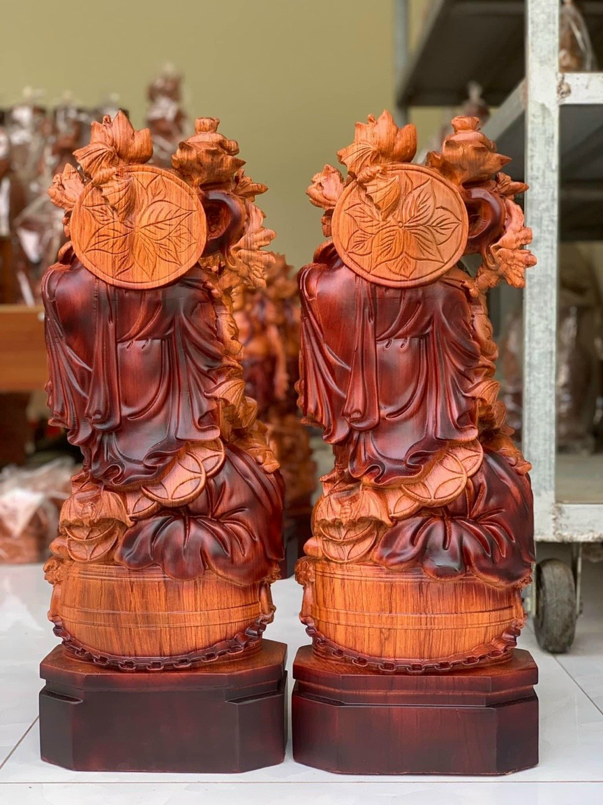 _ Tượng được điêu khắc vô cùng tỉ mỉ ,tinh sảo kỳ công .Đi hầu hết tất cả mọi chi tiết góc ngách nội dung hoa văn của tượng đều được gọt tỉa chỉnh sửa hoàn toàn bằng bằng tay thủ công .Đồng thời tượng được kiểm định kỹ lưỡng khắt khe ,như cho vào thẩm sấy cho gỗ kiệt .Mục đích trống dập nứt vênh mo mối mọt ,kết hợp với trà nhám ,đánh giấy giáp nhiều nước ,sờ mát lạnh .Song rồi cho vào phun lót làm bóng mờ để giữ lại mầu sắc vân gỗ tự nhiên ,Cũng như sơn ,son dát vàng cao cấp như ảnh trên .Tượng được làm và hoàn thiện do bàn tay khối óc tài hoa .Từ những người thợ dầy rặn kinh nghiệm ,cũng như tay nghề cao trong làng nghề truyền thống