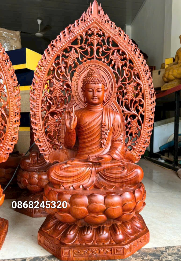 _ Tượng Phật thích ca được làm bằng chất liệu gỗ hương đá liền khối tự nhiên 100%