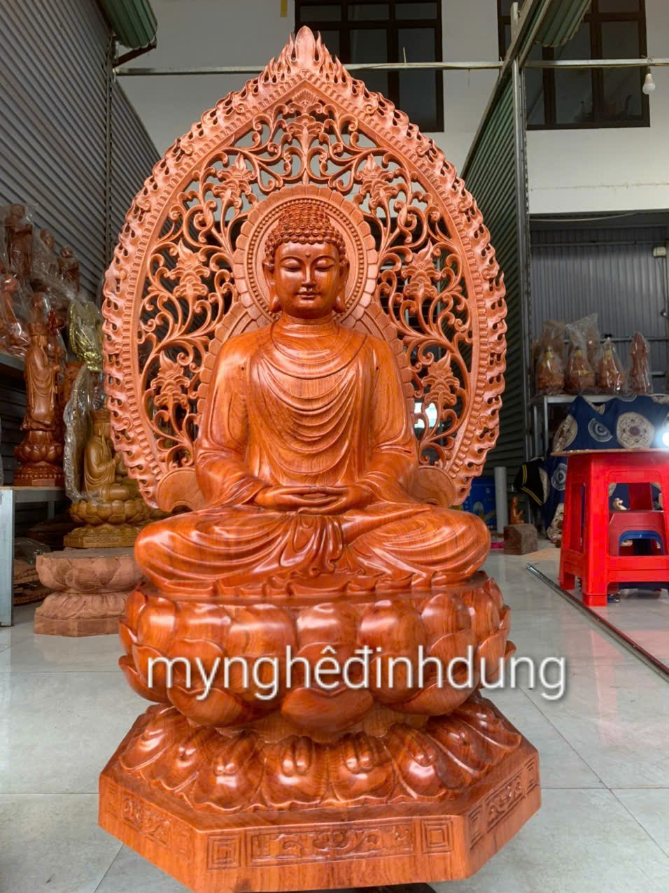 _ Tượng phật thích ca mẫu ni được làm bằng chất liệu gỗ hương đá liền khối tự nhiên 100%