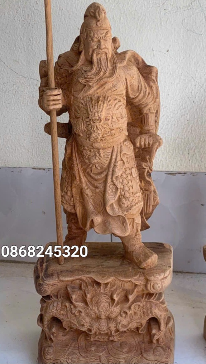 _ Tượng quan công trấn ải được làm bằng chất liệu gỗ ngọc am liền khối tự nhiên 100%