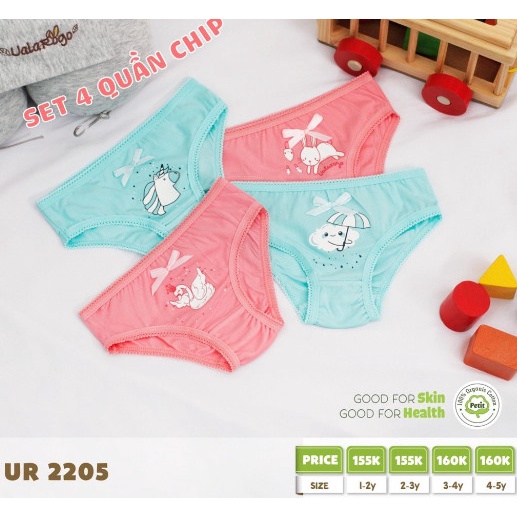 Giới thiệu (UALA ROGO) Set 4 cái quần chip tam giác cho bé gái size từ 1-5y