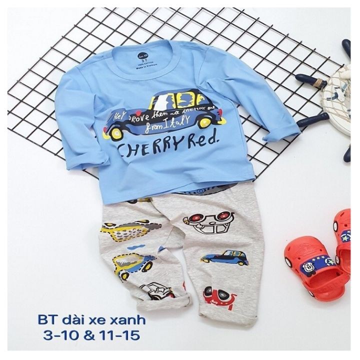 Giới thiệu Đồ Bộ Tay Dài Bé Trai Hình Thú Khủng Long và Hình Xe Từ 9kg-25kg. Mẫu đẹp- hình in sắc nét- thun mát