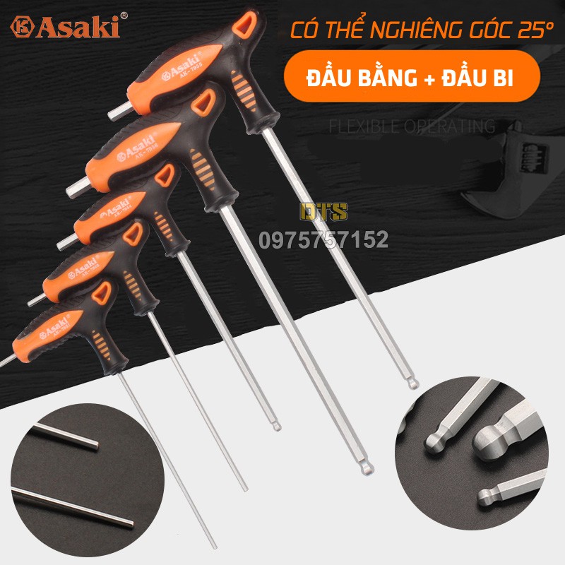 Nhà cửa & Đời sống > Dụng cụ & Thiết bị tiện ích > Dụng cụ > Đinh, vít & chốt || Tay vặn lục giác chữ T cao cấp Asaki 2mm – 10mm, chìa vặn chữ T đầu lục giác, thiết kế công thái học, độ chính xác cao