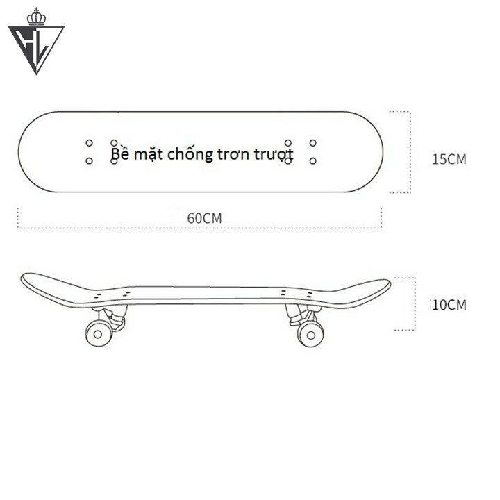 - Kích thước của ván trượt: Dài x Rộng x Cao:60 x 15 x 10 cm.