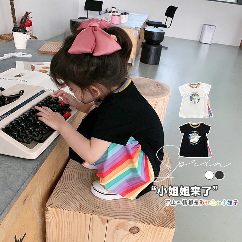 Giới thiệu Váy Xuông Hình Pony Bé Gái, Chất Liệu Cotton, Phối Vạt Cầu Vồng Thời Trang Sành Điệu