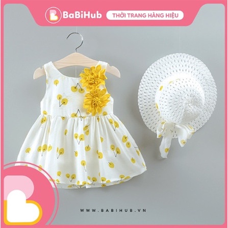 Giới thiệu Đầm cho bé gái kèm mũ đính hoa, Váy cho bé gái 0-2 tuổi chất cotton mềm dáng xòe họa tiết cherry đáng yêu_20040981