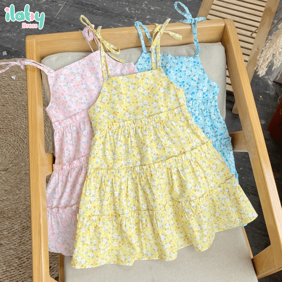 Giới thiệu Váy 2 dây cho bé gái ILABY họa tiết hoa VINTAGE 3 tầng bèo [V02201]