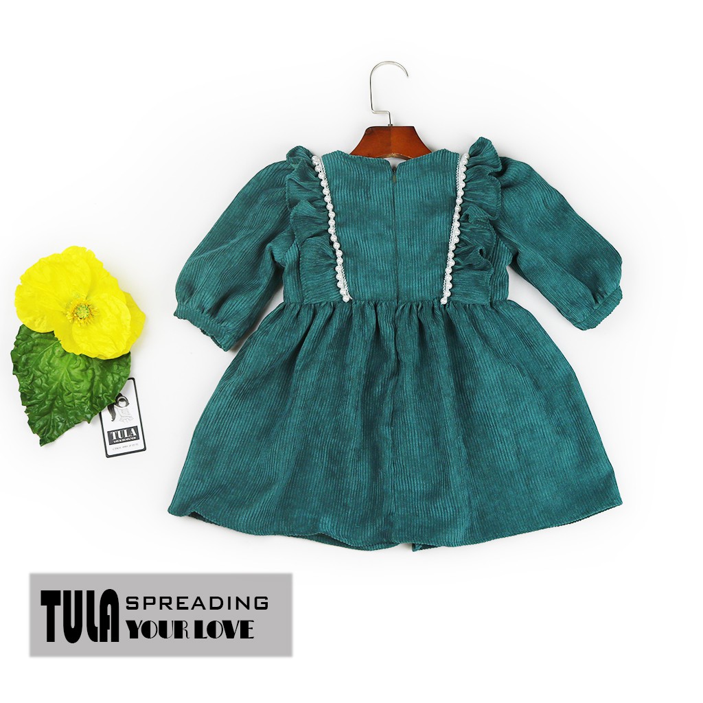 1. THÔNG TIN SẢN PHẨM ** Váy Đầm Cho Bé Gái Vải Nhung Tăm Hàn Quốc Gắn Nơ Và Viền Hạt Trai Xinh Xắn • NGUỒN GỐC VÀ XUẤT XỨ: Sản phẩm váy nhung tăm cho bé được thiết kế, sản xuất và cung cấp tại Việt Nam bởi Tulalove. Sử dụng chất liệu vải nhung tăm dày dặn được nhập từ Hàn Quốc chất lượng cao. • MÀU SẮC: Nhung tăm màu xanh, gắn nơ bóng trắng kem và dây hạt trai như hình ảnh. • KIỂU DÁNG: Váy xòe Tula thiết kế 2 lớp cho bé yêu, với thiết kế cách điệu, điểm nhấn là bèo vai kết hợp với nơ và hạt trai. Ba/mẹ sẽ vô cùng hài lòng với mẫu váy này khi mua cho bé. • HỌA TIẾT: Màu xanh đơn sắc. • THÍCH HỢP: Thu Đông • SỬ DỤNG: Váy được sử dụng cho bé khi đi chơi, dạo phố, dự tiệc. Các ngày lễ tết, noel, cưới hỏi. • Váy đầm nhung cho bé với đường may tinh tế, chắc chắn, đều đẹp, tỉ mỉ từng đường kim mũi chỉ, được kiểm soát chặt chẽ bởi tiêu chuẩn chất lượng của Tulalove