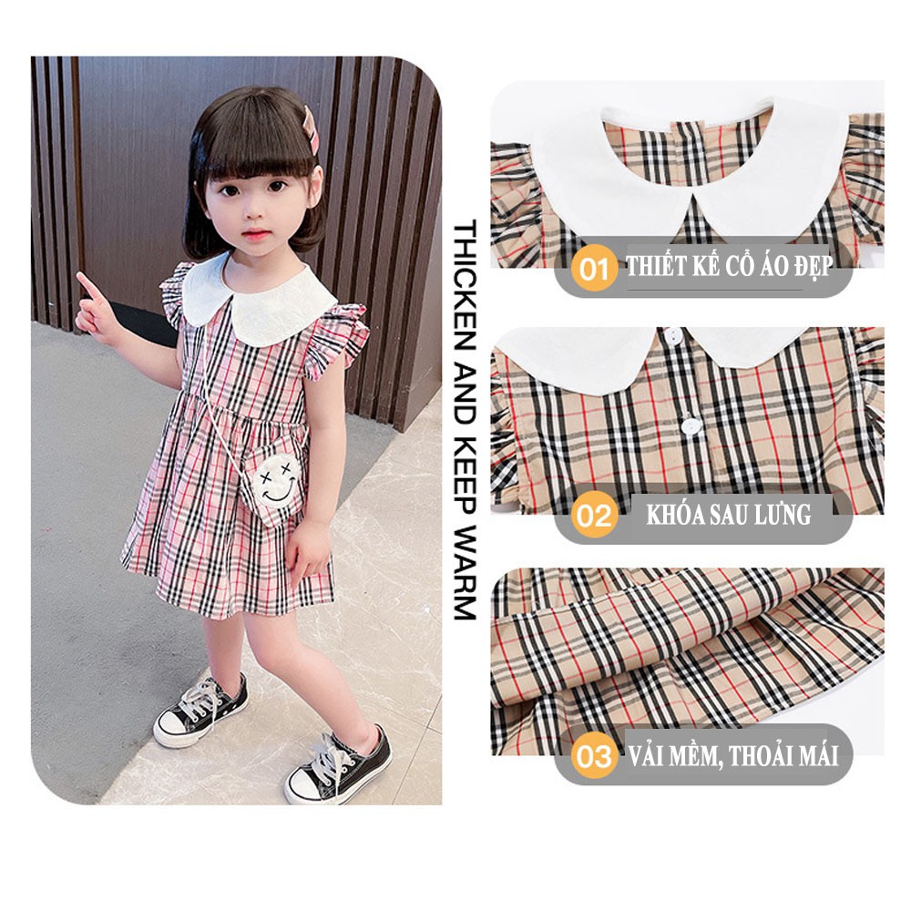 Giới thiệu Váy, đầm bé gái mùa hè chất cotton họa tiết kẻ sọc cánh tiên thoáng mát dễ thương QATE21