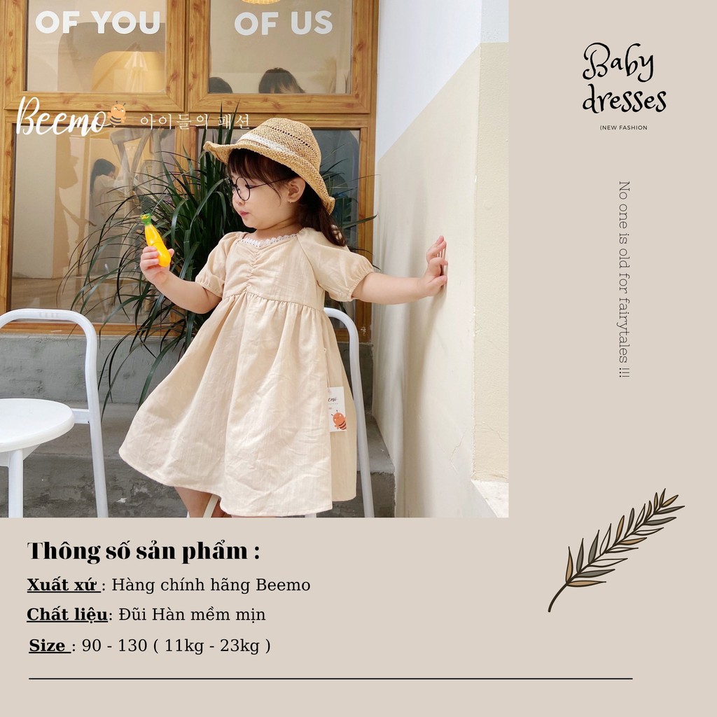 Váy đầm cho bé gái Beemo - Chất liệu đũi Hàn thoáng mát, thiết kế điểm nhấn nhún ngực điệu đà, cổ viền ren nổi bật B051