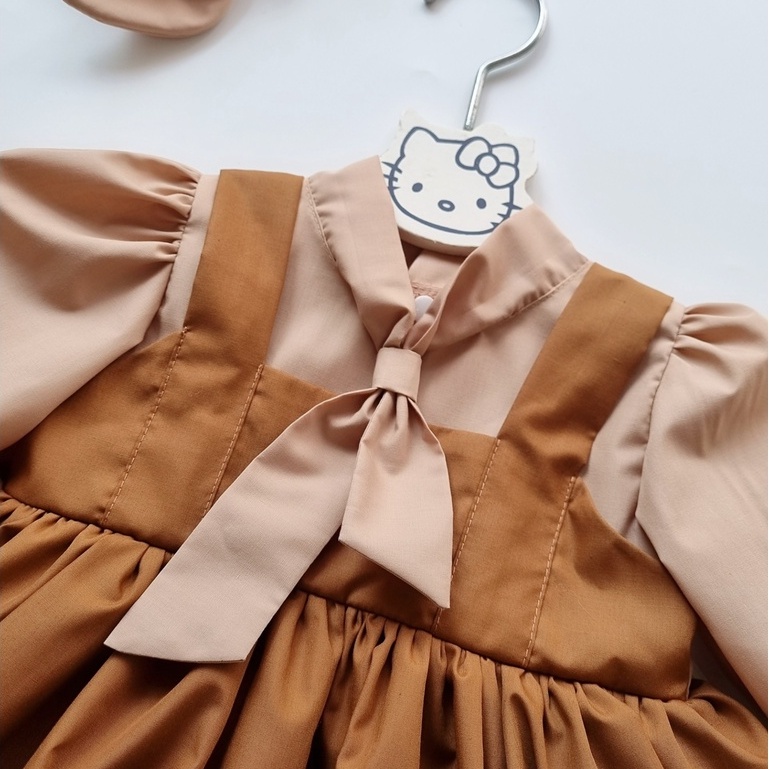 Váy Đầy Tháng Cho Bé Sơ Sinh 0 12 Tháng VY DESIGN. Body Váy Bé Gái Dài Tay Màu Nâu Tây Kèm Băng Đô. Body Sơ Sinh