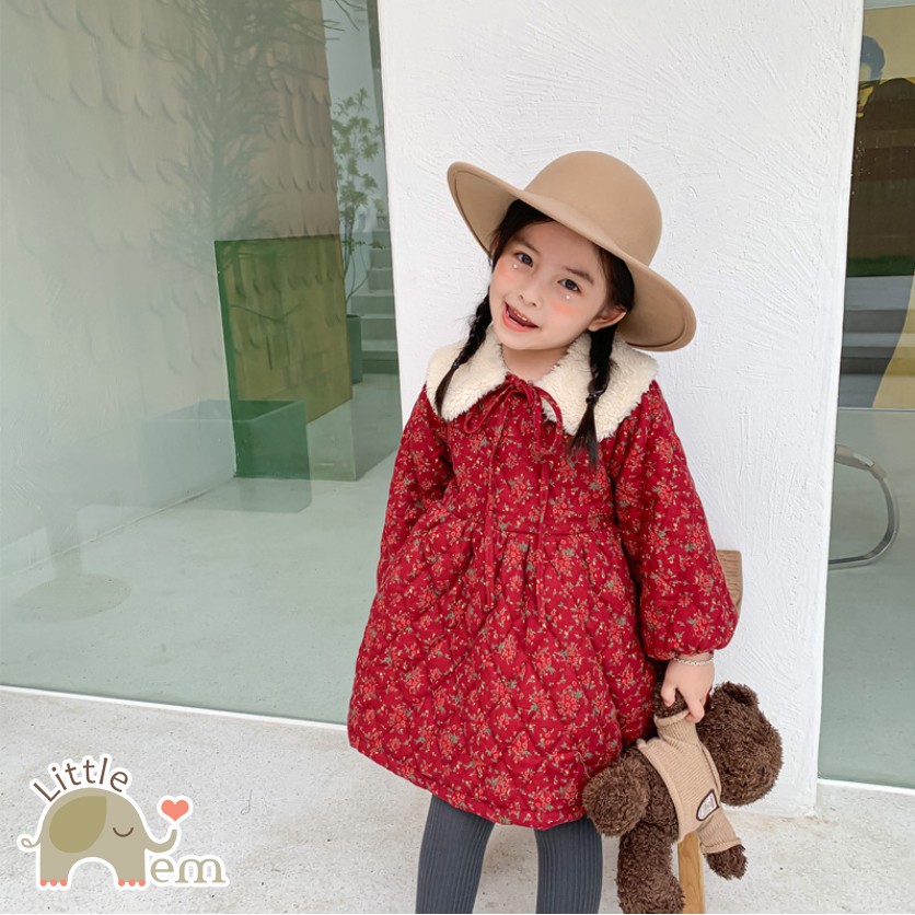 - Váy bé gái chần bông ấm áp, lớp lót bên trong là nhung