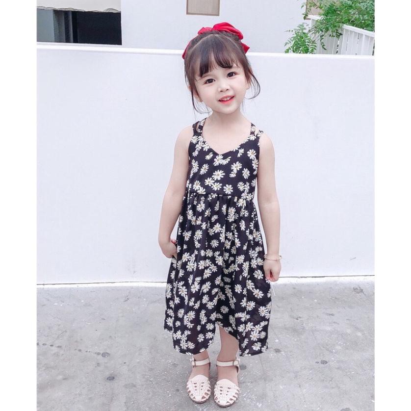 Giới thiệu Váy Maxi bé gái vải lụa hoa cúc dây chéo lưng