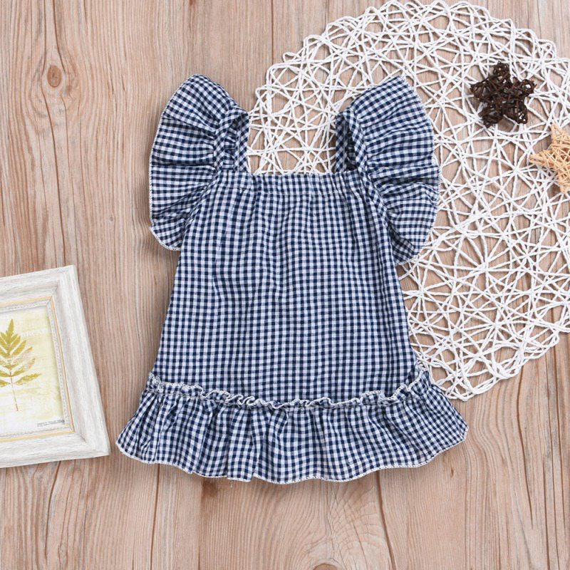 Giới thiệu Váy ngắn cổ vuông không tay phối bèo họa tiết caro dễ thương dành cho bé gái