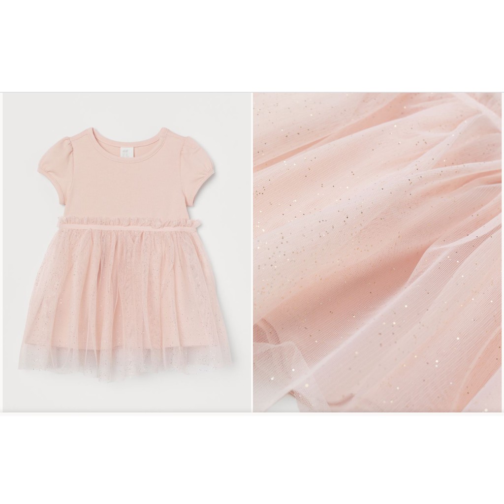 Váy ngắn tay hồng xòe HM H&M_hàng chính hãng authentic Chất liệu 100% cotton Mã SP 0930415001 Váy sát nách, chất cotton mềm mại, thoáng mát, thấm hút mồ hôi