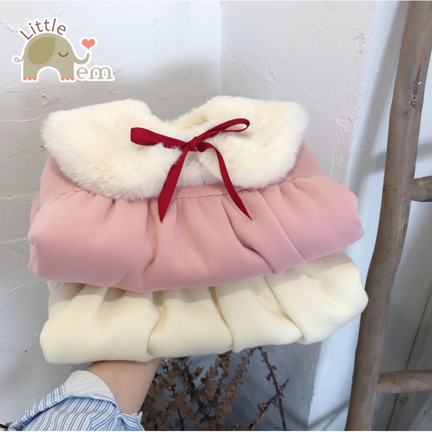 Giới thiệu Váy nhung cổ nơ chần bông cho bé gái kiểu dáng Hàn Quốc 😍 Váy chần bông ấm áp cho bé gái kiểu dáng Hàn Quốc, cổ bông nơ