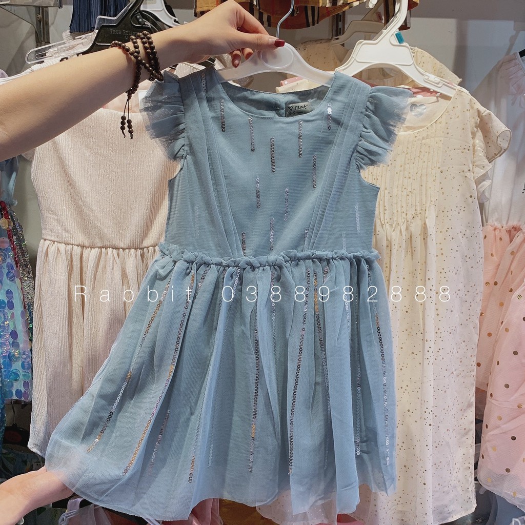 Váy xanh công chúa đính cườm, tay ren lấp lánh xinh lắm ạ. Lâu lâu mới có mã váy công chúa mà giá bèo như này nha, bên ngoài màu hơi tối so với màu em chụp ạ!