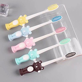 Bàn chải đánh răng hình gấu: Kích thước: Dài 14cm, đầu bàn chải 2.5cm Chất liêu: Silicon + nhựa PP Trọng lượng: 55g Đóng gói: Túi OPP.