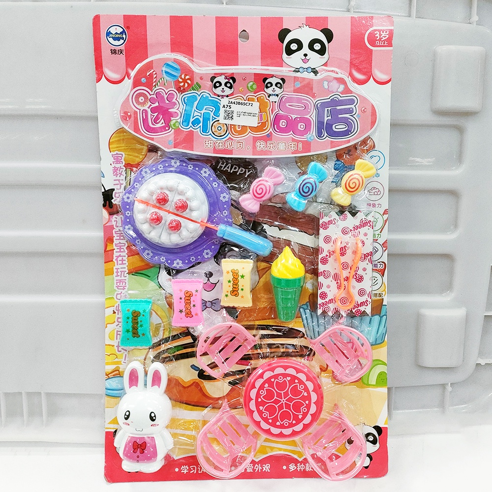 ☀️ Bộ đồ chơi gồm: các viên kẹo đủ màu, các loại bánh, máy tính tiền, tiền giấy...
