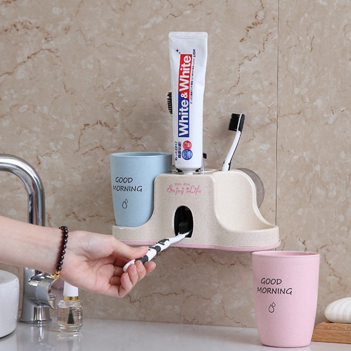 Nhà Cửa & Đời Sống > Đồ dùng phòng tắm > Thiết bị nhà tắm và nhà vệ sinh || [VIDEO] Dụng Cụ Nhả Kem, Lấy Kem Đánh Răng Tự Động 2 Cốc Lúa Mạch Gắn Tường