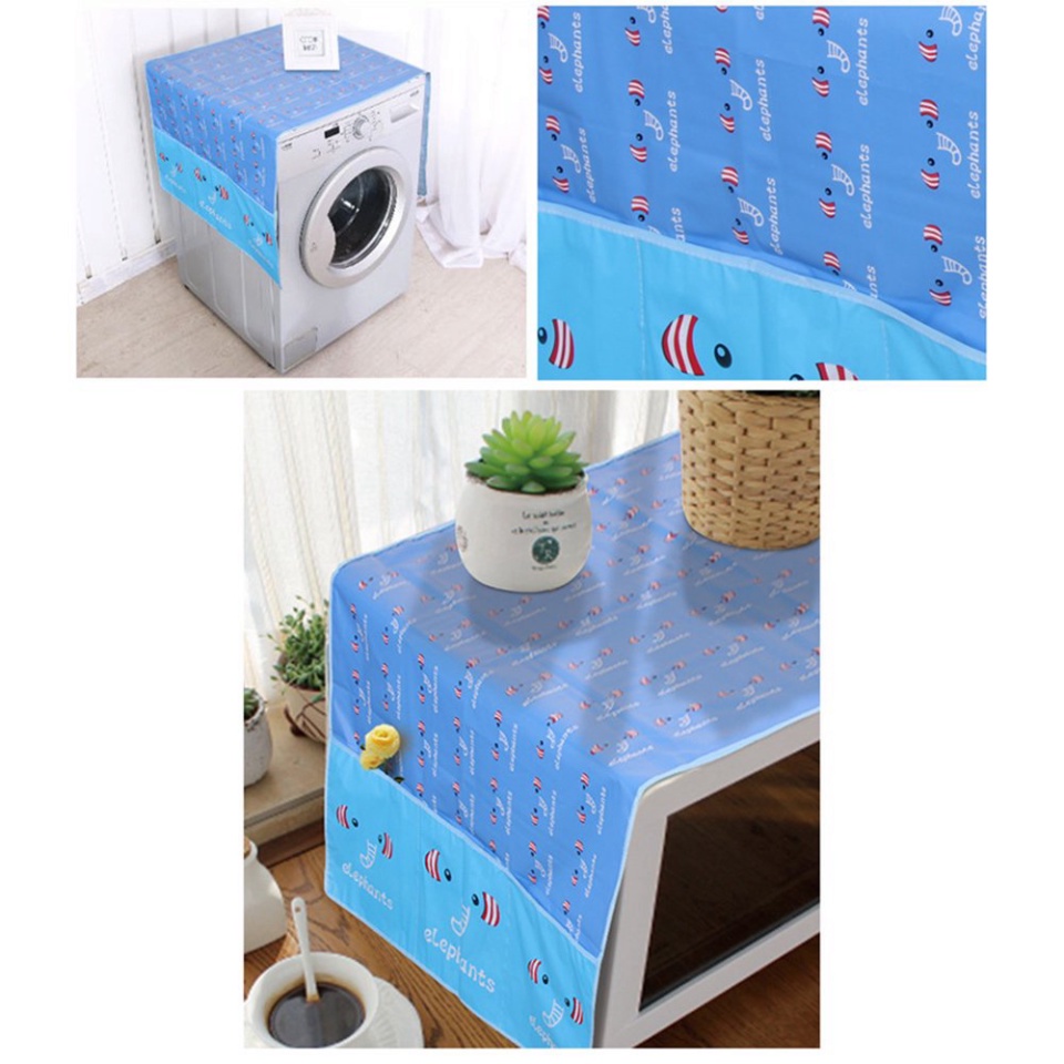 ĐẶC ĐIỂM SẢN PHẨM - GIữ sạch nóc tủ lạnh, máy giặt tránh mọi bụi bẩn và chống thấm nước tốt. - Sản phẩm được làm từ chất liệu PVEA siêu bền; chống thấm; giúp bảo vệ tủ lạnh, máy giặt và lò vi sóng khỏi bụi bẩn; nước… - Hai bên có thêm nhiều ngăn nhỏ để đựng đồ. Giúp bạn tiết kiệm không gian và tiệních hơn cho việc nấu nướng. - Khăn phủ vừa vặn lên phần đầu; che được cả 2 bên hông máy. - Trang trí cho tủ lạnh; lò vi sóng và không gian căn phòng sinh động hơn.