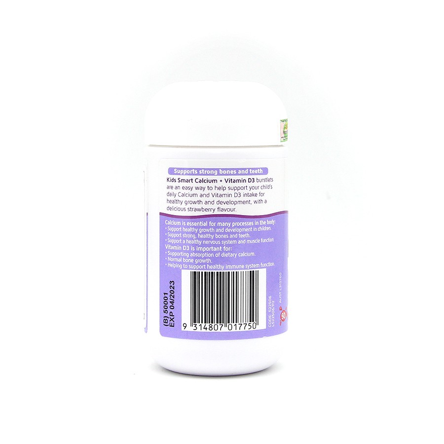 THÔNG TIN KẸO DẺO HỖ TRỢ PHÁT TRIỂN CHIỀU CAO KIDS SMART CALCIUM + VITAMIN D3 BURSTLETS NATURE'S WAY: - Thương hiệu: Nature's Way - Dạng bào chế: Viên nang mềm - Quy cách đóng gói: Lọ 50 viên - Hạn sử dụng: 2 năm kể từ ngày sản xuất - Xuất xứ: Úc
