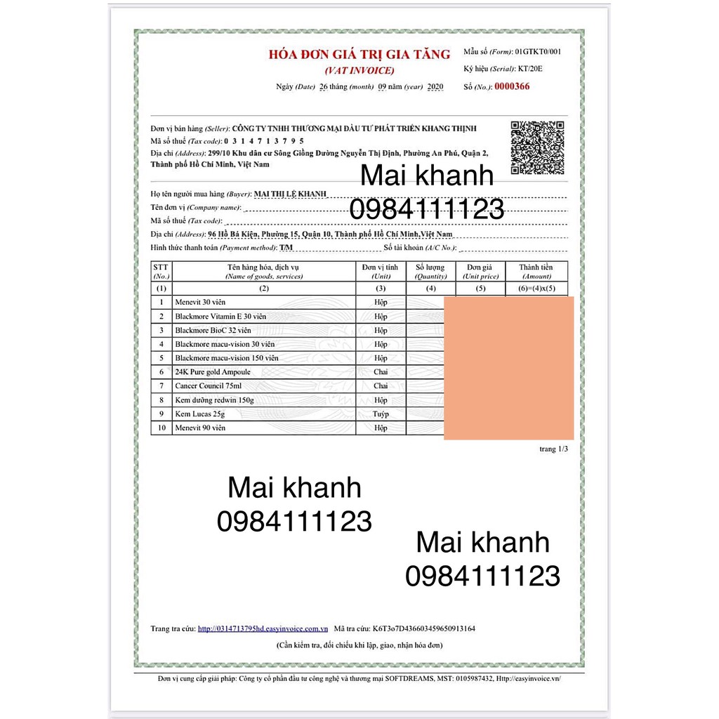 Viên uống bổ mắt Blackmores Macu-Vision 150v, Úc A. Thành phần mỗi viên: • 250mg Vitamin C giúp bảo vệ chống lại tác động của các gốc tự do trong nước mắt • 165mg Natural Vitamin E 200IU giúp bảo vệ màng tế bào • 49.8mg Kẽm oxit giúp chống oxy hóa, 1.3mg Cupric oxit B. Công dụng: • Cung cấp dưỡng chất thiết yếu cho vùng võng mạc, bảo vệ võng mạc khỏi các t.ổn thương từ bên trong • Bổ mắt, hỗ trợ về mắt, đặc biệt chống mỏi mắt, hoa mắt, đỏ mắt cho người hay sử dụng máy tính, xem tivi và thức đêm • Giảm căng thẳng thị lực cho học sinh trong giai đoạn ôn thi • Giúp bảo vệ điểm vàng của mắt nằm ở vùng trung tâm của võng mạc giúp ta nhận biết độ sắc nét, màu sắc và độ rõ của hình ảnh • Giúp bảo vệ chống lại các thiệt hại gốc tự do trong khu vực điểm vàng của võng mạc và tròng mắt • Duy trì sức khỏe tổng thể của mắt giúp bạn yên tâm làm việc, học tập và vui chơi 3. Hướng dẫn cách dùng: • Người lớn trên 18 tuổi ngày uống 1 viên trong hoặc sau ăn • Người dưới 18 tuổi nên tham khảo ý kiến của b.ác sĩ 4. Đối tượng sử dụng: • Người lớn trên 18 tuổi 5. Lưu ý: • Trẻ em dưới 18 tuổi không được sử dụng nếu không có chỉ định của bác sĩ