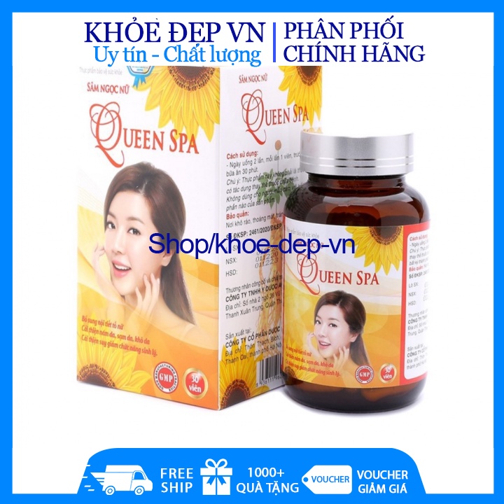 Sức Khỏe > Thực phẩm chức năng > Hỗ trợ làm đẹp || Viên uống đẹp da Sâm Ngọc Nữ QueenSpa bổ sung Collagen giúp đẹp da chống lão hóa giảm nám , sạm da - Chai 30 viên