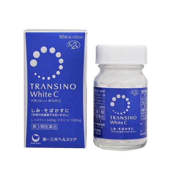 + Viên uống Transino White C Clear của Daiichisankyo Nhật Bản với thành phần vitamin C+ L-Cysteine tác dụng hỗ trợ mờ nám, tàn nhang, trắng da từ bên trong cho MẶT VÀ BODY. Cảm nhận sự thay đổi tích cực sau hai tháng sử dụng