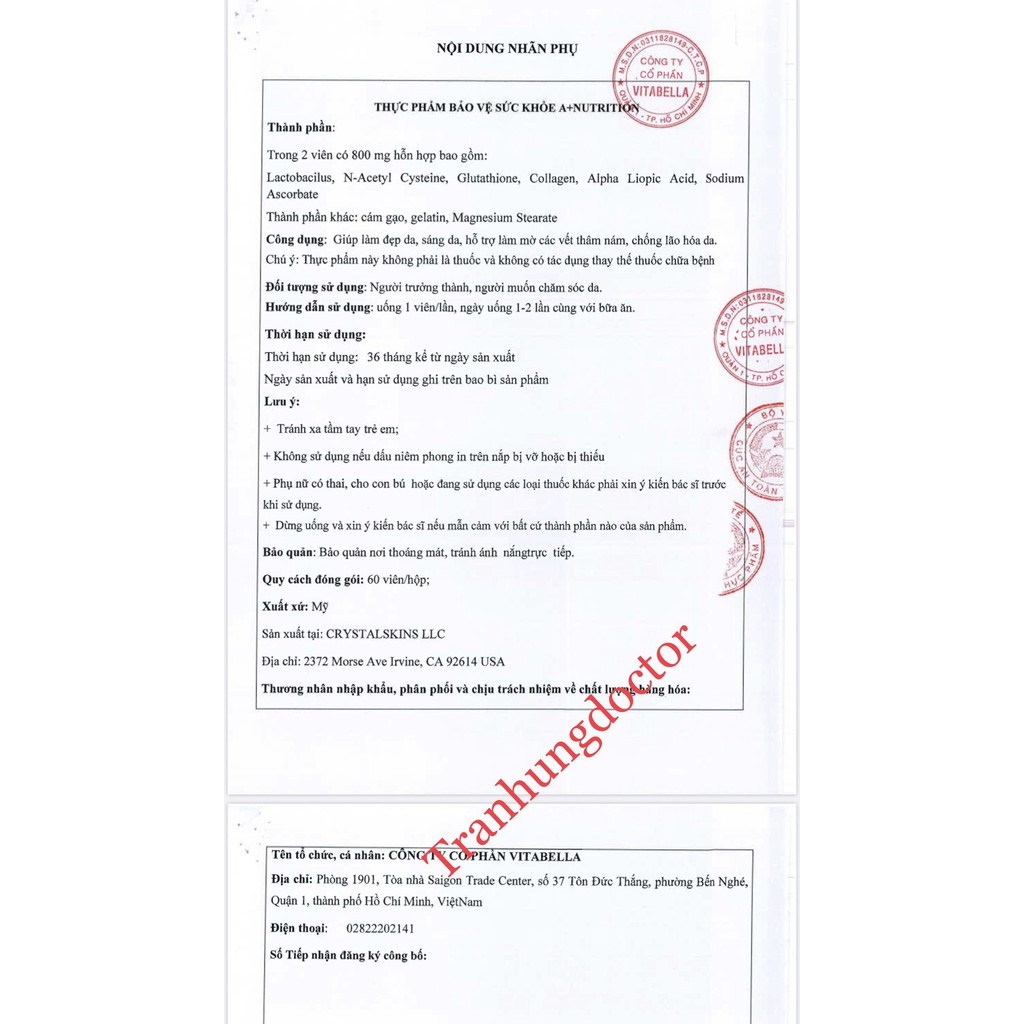 - Nguyên liệu: Alpha Lipoic acid, Setria glutathione, Vitamin C. - Phụ gia: Gelatin, rice bran, magnesium stearate thực vật vừa đủ 1 viên #vienuongtrangda #whitecollection #glutathion #trangda #vienuongtrehoada #vienuongcollagen
